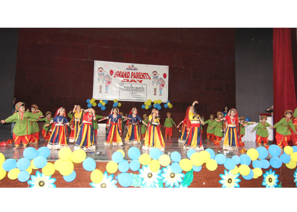 Jodhamal Public School celebrated Grandparents Day with remarkable zest recently to show the love, affection and gratitude towards their elders. School had put up a wonderful show where the little ones surprised each and everybody by putting up a scintillating performance for their beloved grandparents. The programme was kick started with Ganesh Vandana, which was much appreciated by one and all. Ghoomar, Tribal Dance and Patriotic theme dance were the highlights of the show. Zumba and free style dance performances presented by the little kids stole the show, followed by a party song by our juniors. Each item was choregraphed by the teachers and the children wanted to showcase their love towards their Dadu, Dadi, Nanu and Nani. Many items such as songs and Games were put up for the enthusiastic grandparents, which were participated by one and all. The JMPians made everyone sway and enter their world of fun and frolic, thus making the Grandparents Day a huge success. The grandparents were encouraged to showcase their singing and dancing skills on the stage. The programme begin with the lightning of lamp by Chief Guest, Ms. Yasha Mudgal (IAS), Secretary Co-operative Deptt. Guest of Honour, Mr. Mudasar Farooq Ganai, Chief Judicial Magistrate and Ms. Arati Kuthiala (Director). Welcome address was given by Dr. Deep Khare (Principal). The entire administration of the school appreciated the efforts of Mrs. Neetu Johri (Coordinator), Mrs. Deepali Puri (CCA In-charge), the entire Pre- primary teachers (Ms. Dolly Chandoke, Ms. Amita Charak, Ms. Suvidha Anand, Ms. Anjali Gupta, Ms. Shreya Sharma, Ms. Priyanka Verma, Ms. Gagandeep Kour, Ms. Vinti Bhasin, Ms. Preeti Puri), Dance Department (Ms. Shruti Bakshi, Ms. Aadi Upadhayay, Ms. Shivali Rai, Ms. Arti, Mr. Deepak) and Art & Craft Department (Ms. Shweta Manga, Ms. Aman, Ms. Hemu Jaggi, Ms. Sonika Chalotra). All Grandparents went highly satisfied and were very happy to see Jodhamal imparting values among Gen Next in a fun filled plethora of activities. Coordination, Cooperation, Love, mutual respect, team spirit and like are some of the values which are instilled through these programmes involving the Grandparents by making them to participate in various Interactive games and activities was the highlight of the day. Vote of Thanks was given by Ms. Shefali Sanwal (Vice-Principal). She appreciated the efforts of the entire team of Pre-Primary Wing.
